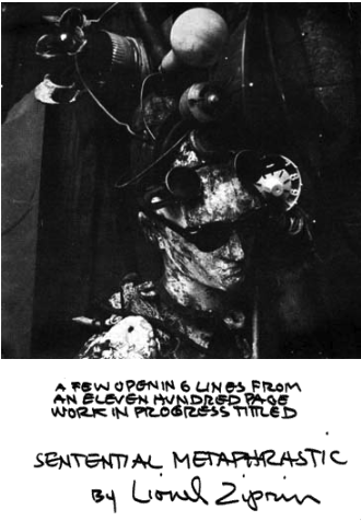 9 artists, 14 recordings. Recordings of the spoken voice make up fourteen exhibits. Eleven of these capture the voice of an author reading from a previously published work: you can hear the voice of artist Marcel Duchamp, Constructivist Naum Gabo, “Dada drummer” Richard Huelsenbeck, dancer Merce Cunningham, and writers William S. Burroughs, Christopher Logue, and Alain Robbe-Grillet. The other three recordings are The Young Turtle Assymetries, a one-of-a-kind performance piece for five voices, by Jackson MacLow; a text by Samuel Beckett, read by an actor; and dancer Merce Cunningham's Further Thoughts, consisting of extemporized responses to (unrecorded) questions from an interviewer.