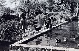 In contrast to her husband who is a mountain climber and expert skier with many trophies, Mrs. Benedict is disinterested in most sports. She keeps trying skiing... and giving it up forever. But she enjoys horseback riding with her family. She plainly loves the land, works hard in her gardens and conservatory, and devotes much time to her children and the animals. The stable wing of the house was built because the Benedicts planned to breed horses. However, they found it much too time-consuming and reluctantly gave the project up.