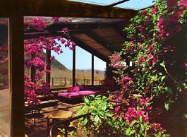 To further unify the house with the land, a waterfall pours off the roof into a rock-ringed pool. The water then flows in a stone trough around the house—a sophisticated irrigation ditch which cools the air in summer, waters the gardens, and ultimately irrigates the horse pasture.